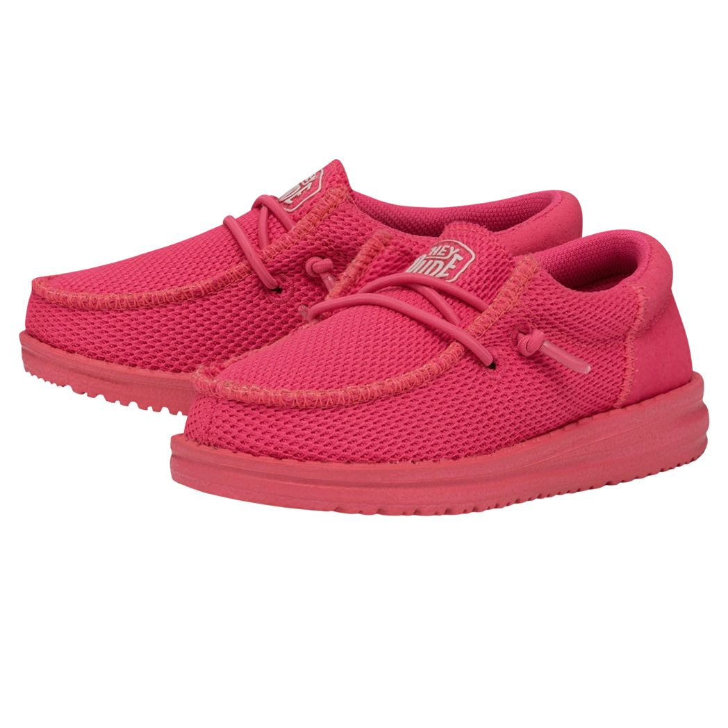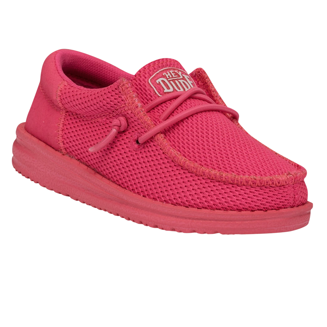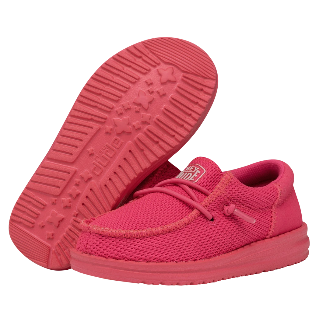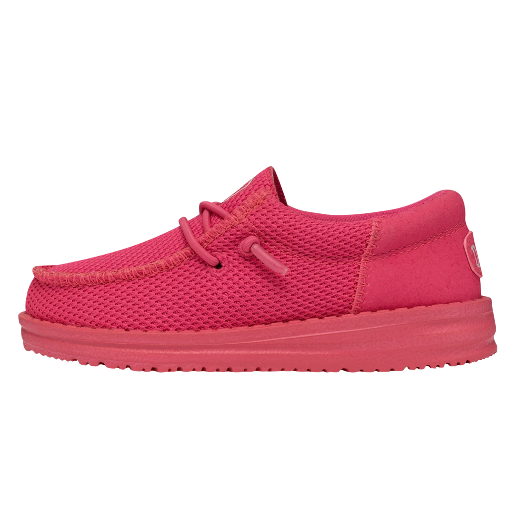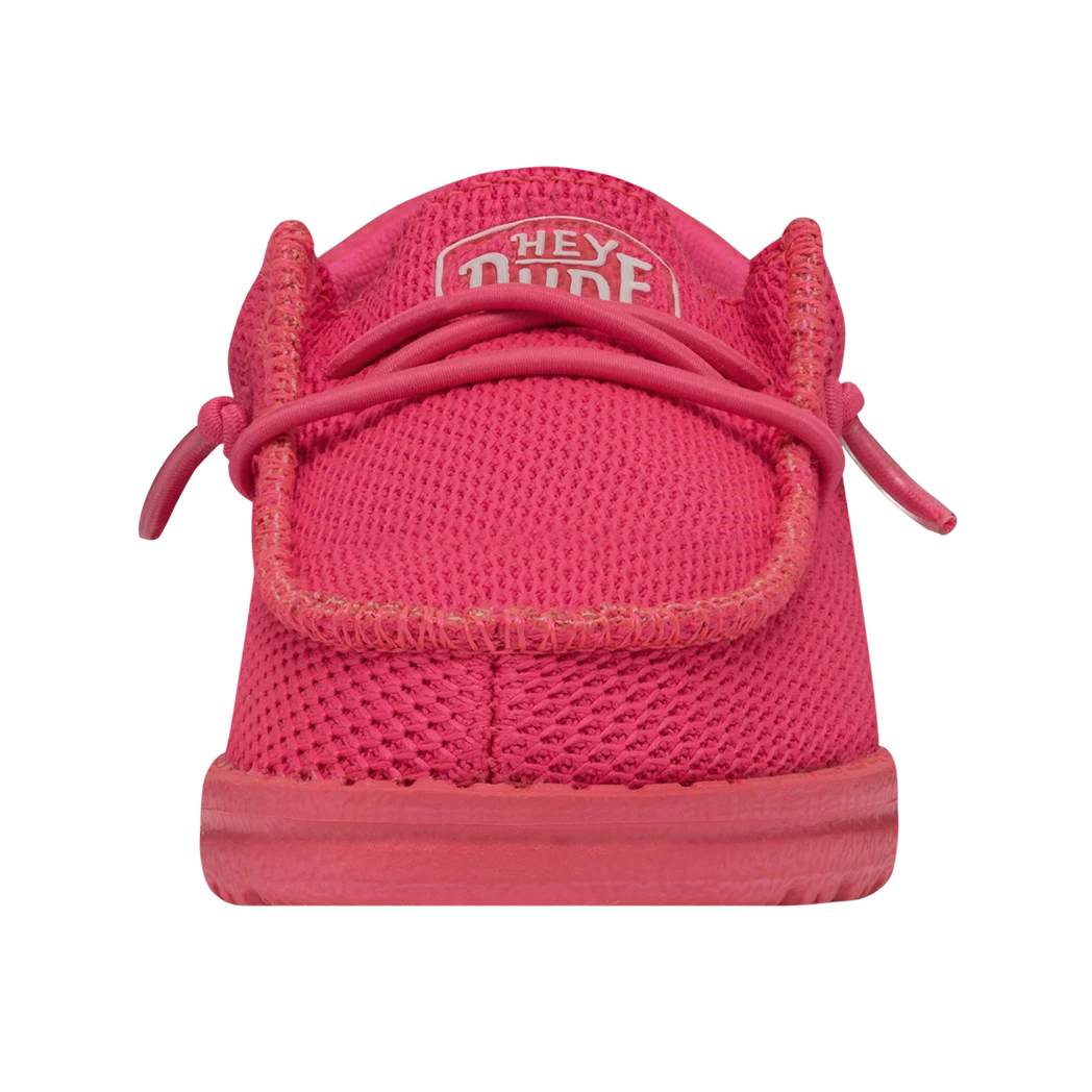 The most fun toddler shoe you will find! The Hey Dude Toddler Mono Electric Pink is made to stand out and simply screams fun.  Stretchy Knit, cushy foam insole, ultralight outsole, means all day comfort without ever lacking style!Â