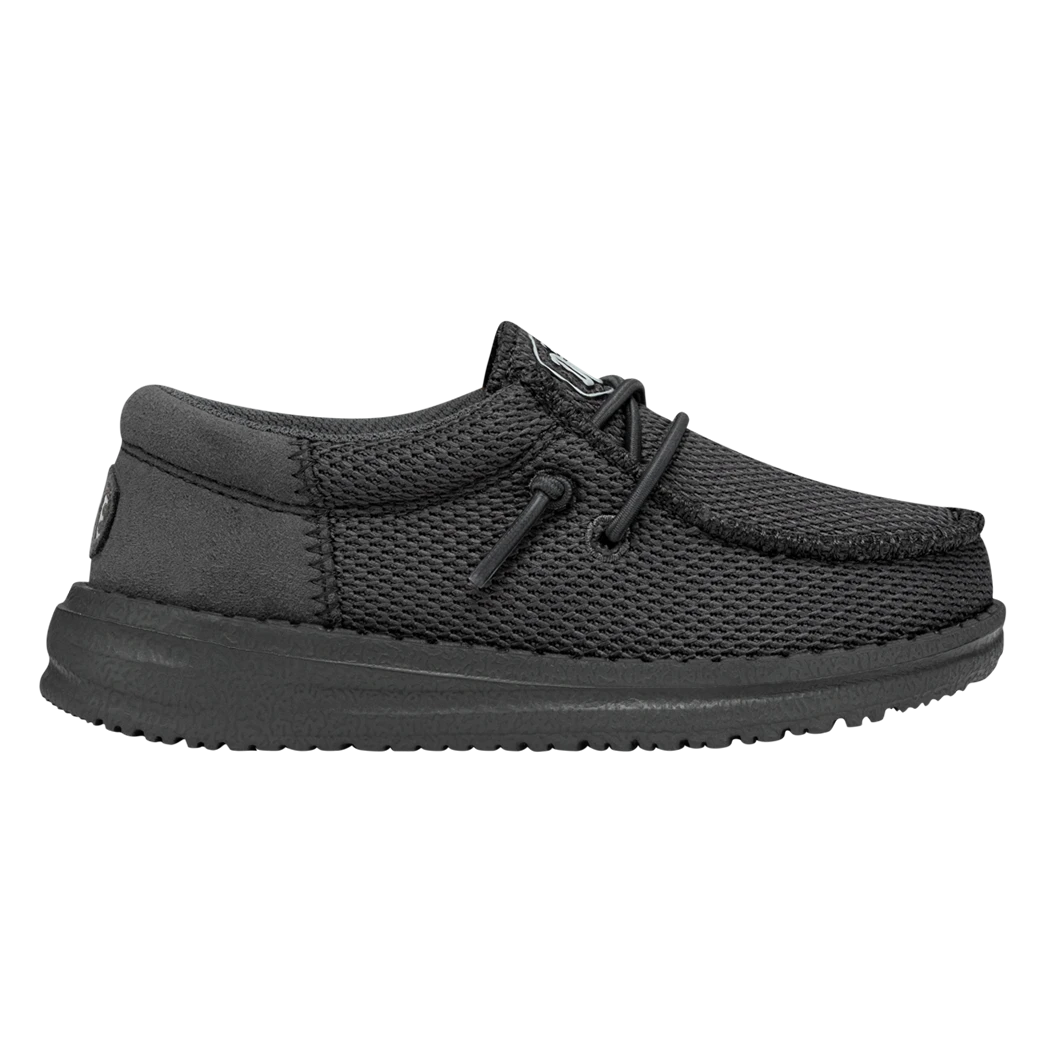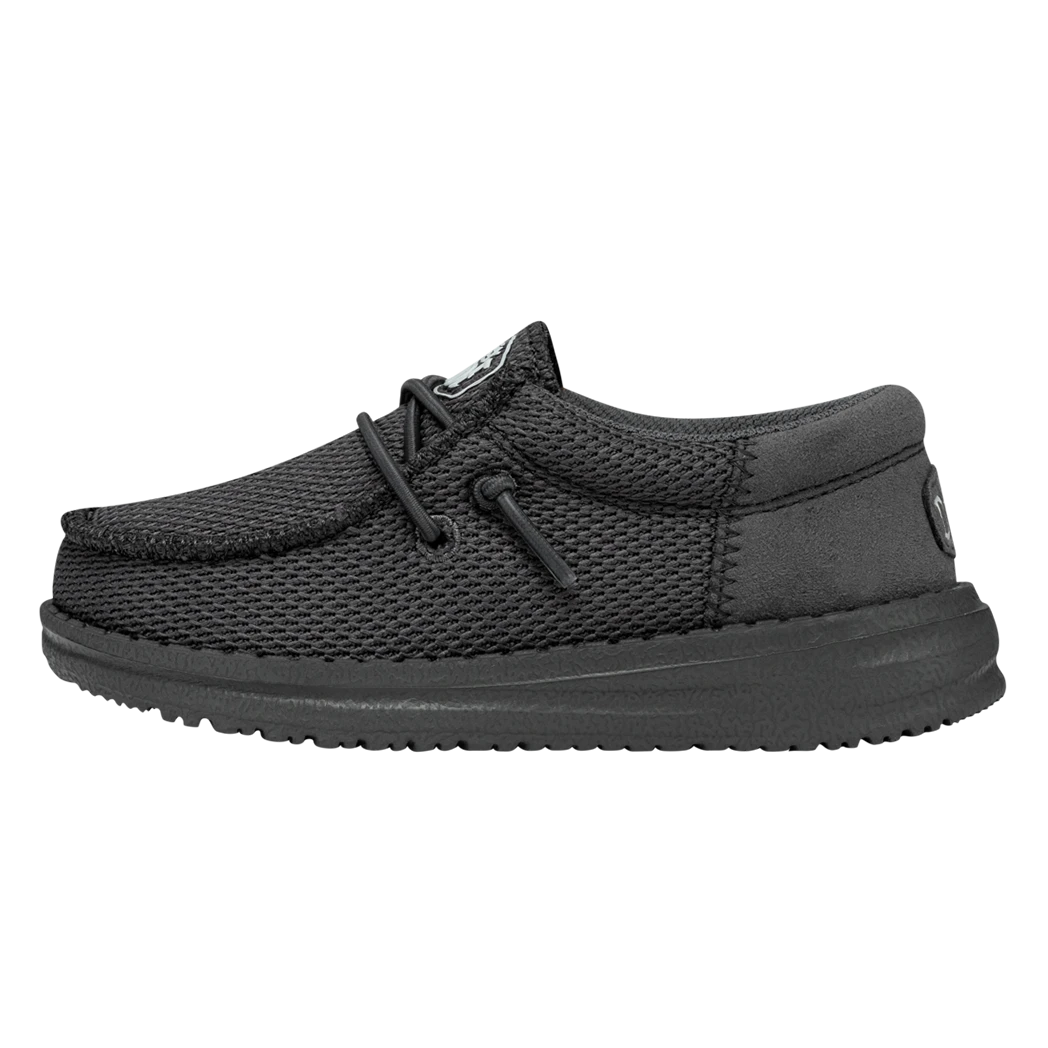 The Hey Dude Toddler Wally Funk Mono Alloy, features a stylish tone on tone look and of course comfort!  The monochrome colorway give a clean modern look. Stretchy Knit, cushy foam insole, ultralight outsole, means all day comfort without ever lacking style!Â