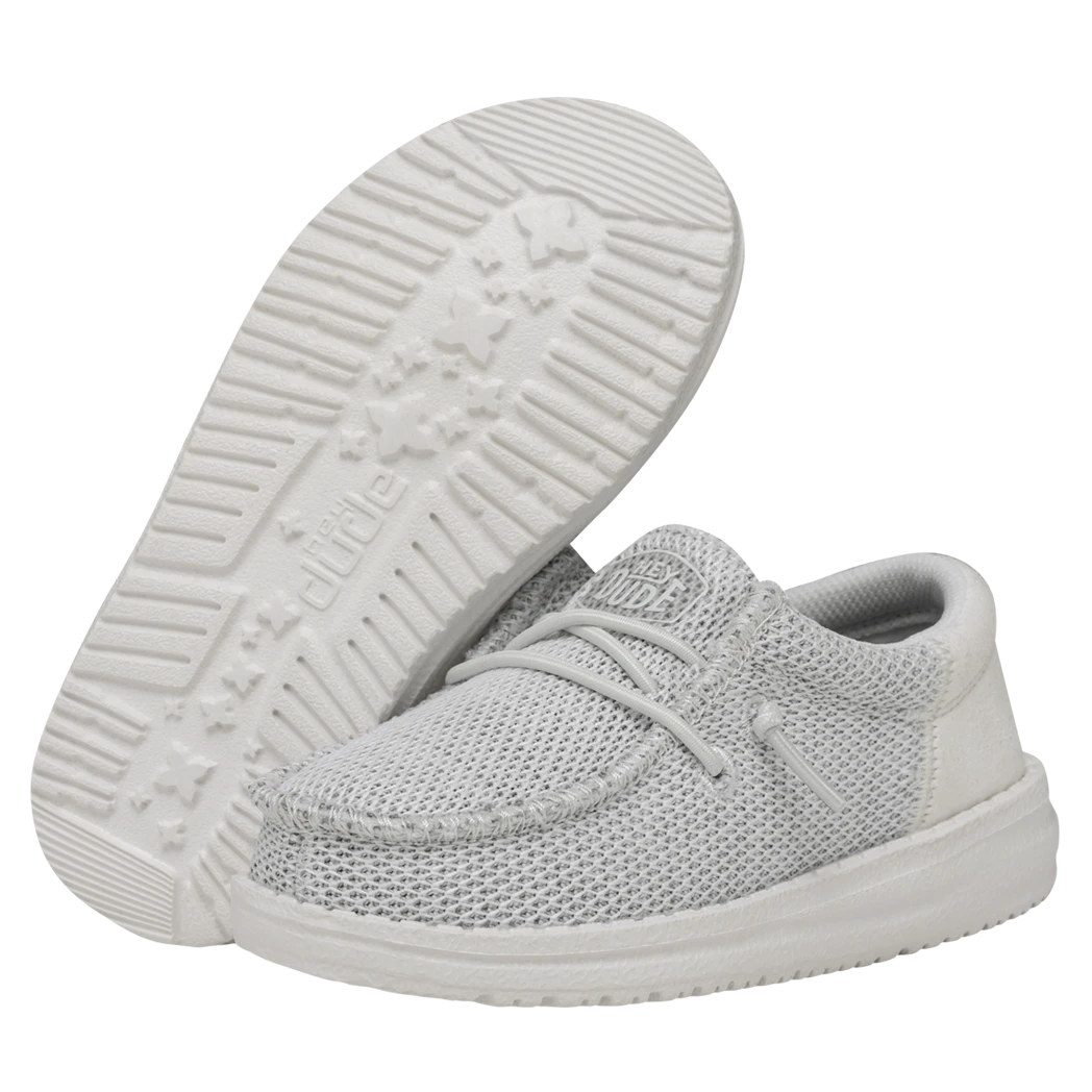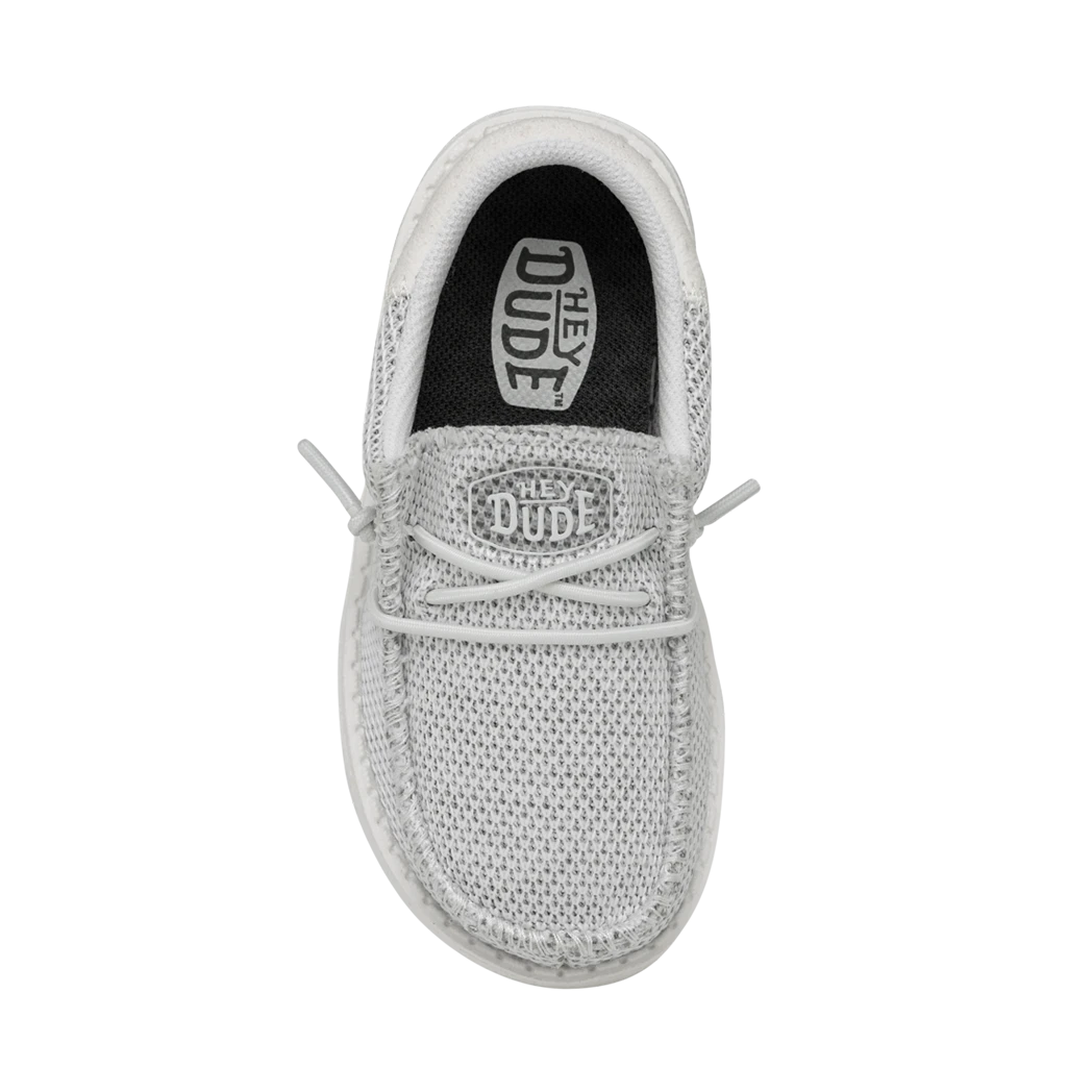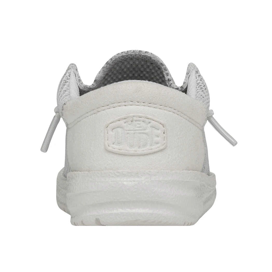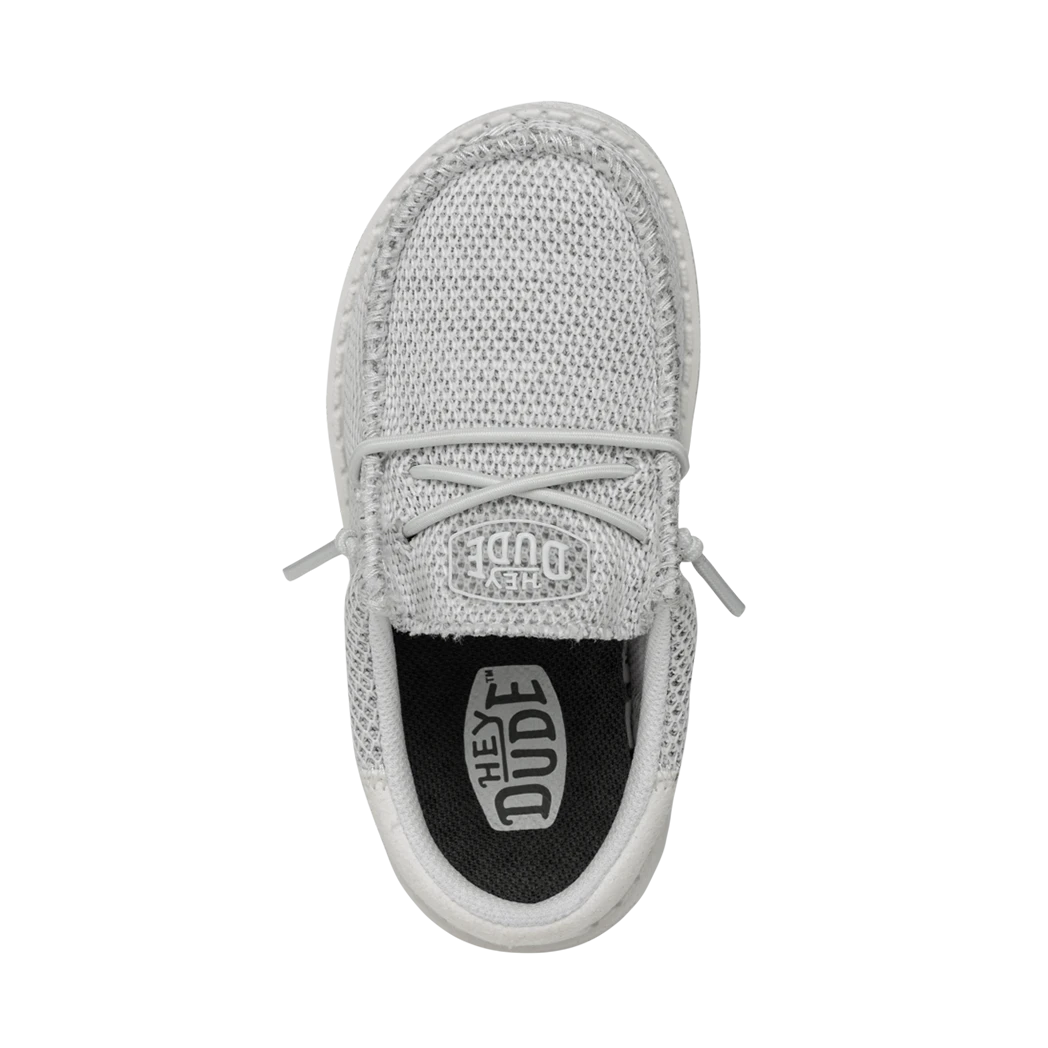 The Hey Dude Toddler Wally Funk Mono Ghosted, features clean, sharp lines, a stylish look and of course comfort!  The fun monochrome colorway give a clean modern look. Stretchy Knit, cushy foam insole, ultralight outsole, means all day comfort without ever lacking style!Â