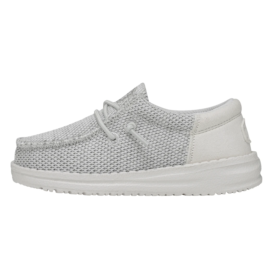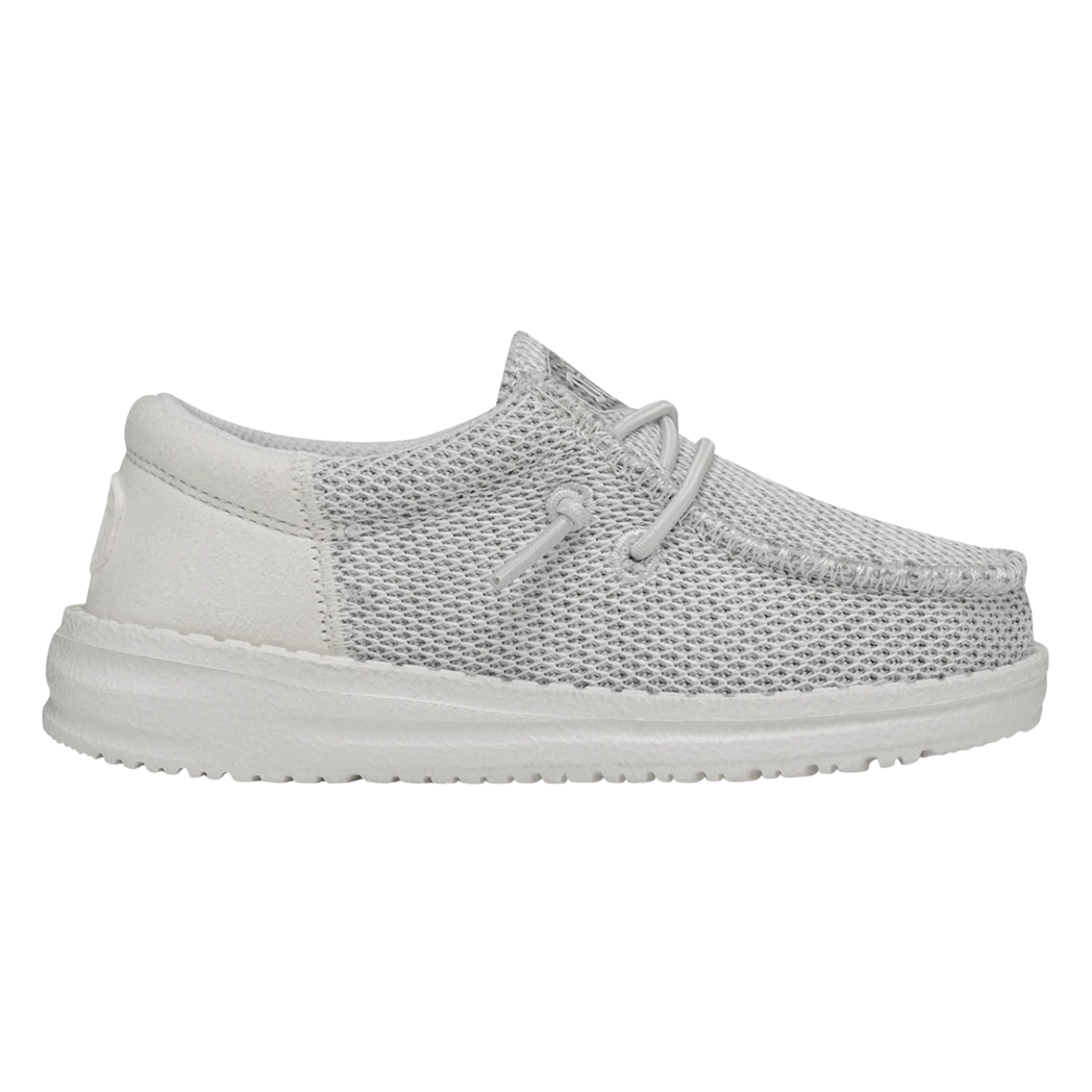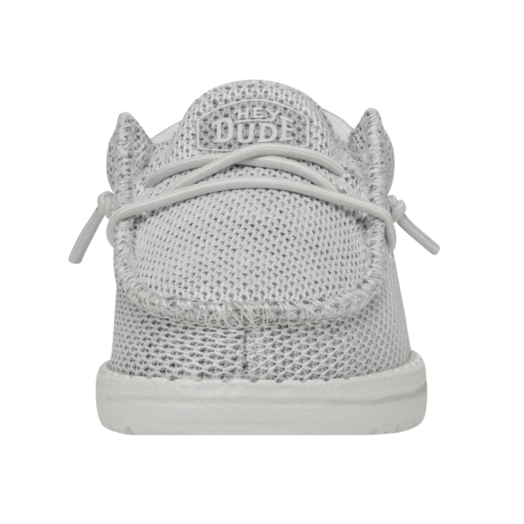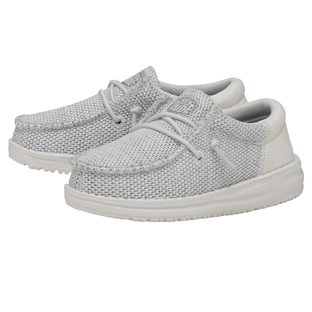 The Hey Dude Toddler Wally Funk Mono Ghosted, features clean, sharp lines, a stylish look and of course comfort!  The fun monochrome colorway give a clean modern look. Stretchy Knit, cushy foam insole, ultralight outsole, means all day comfort without ever lacking style!Â