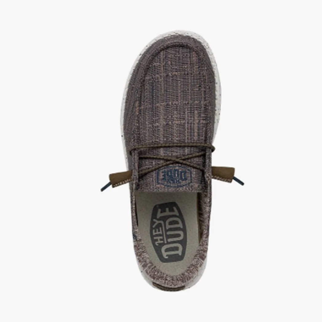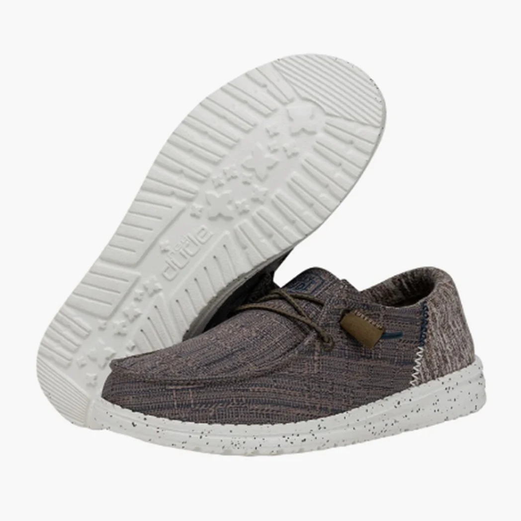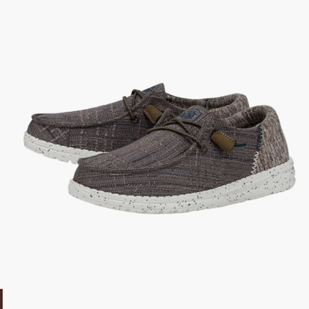 The Wendy Funk Slub Blanket Dust Cloud is a Hey Dude classic design with a fun new look! Featuring a woven, polyester-blend upper, lined with a breathable cotton lining, and the trusted Hey Dude lightweight foam outsole; this shoe will keep you comfy and stylish all day long!Â
