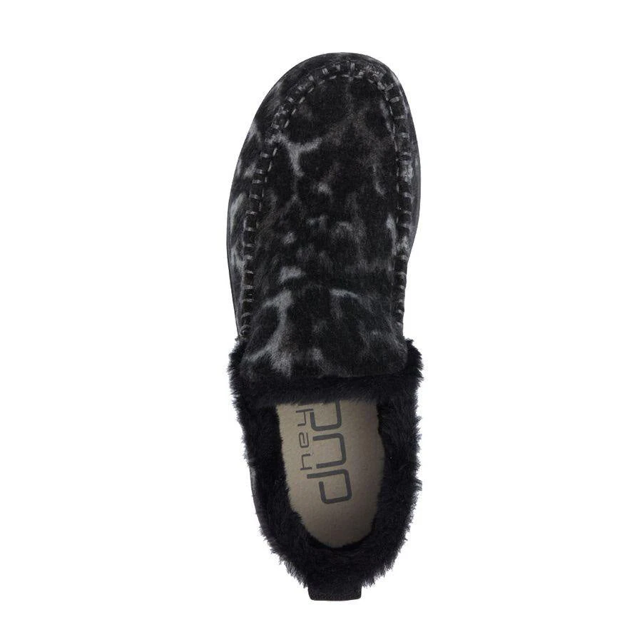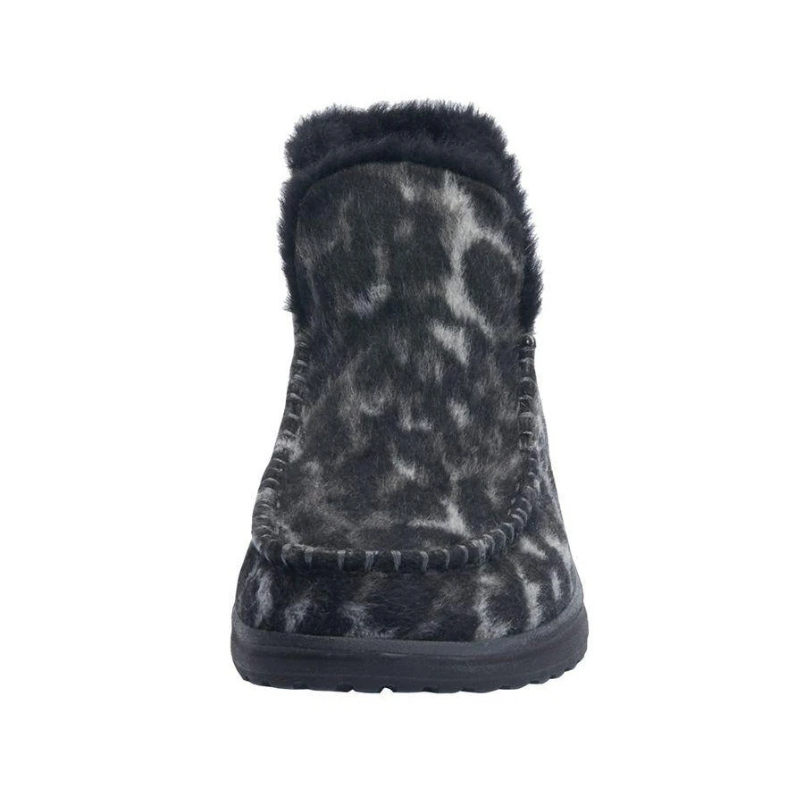 Slip into these warm comfortable grey marbled moccasins for a day on the go. They are made of a soft wool blend with a faux fur lining and are very light weight. Keep your feet warm this winter with these adorable shoes.Â