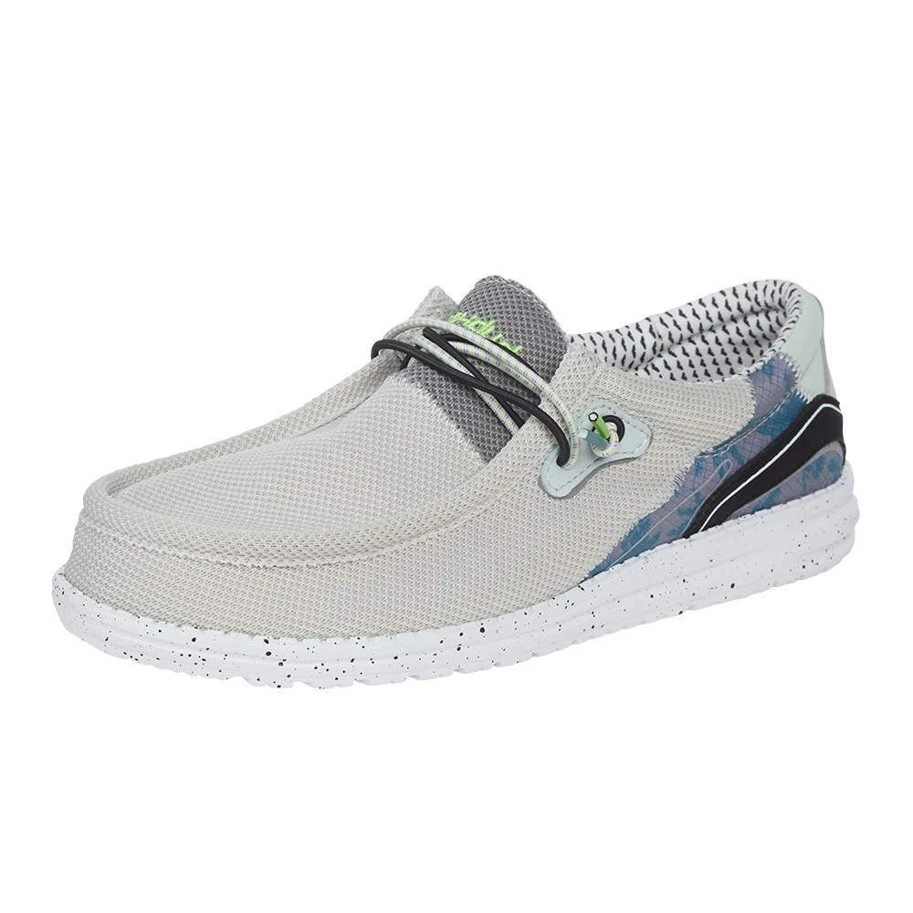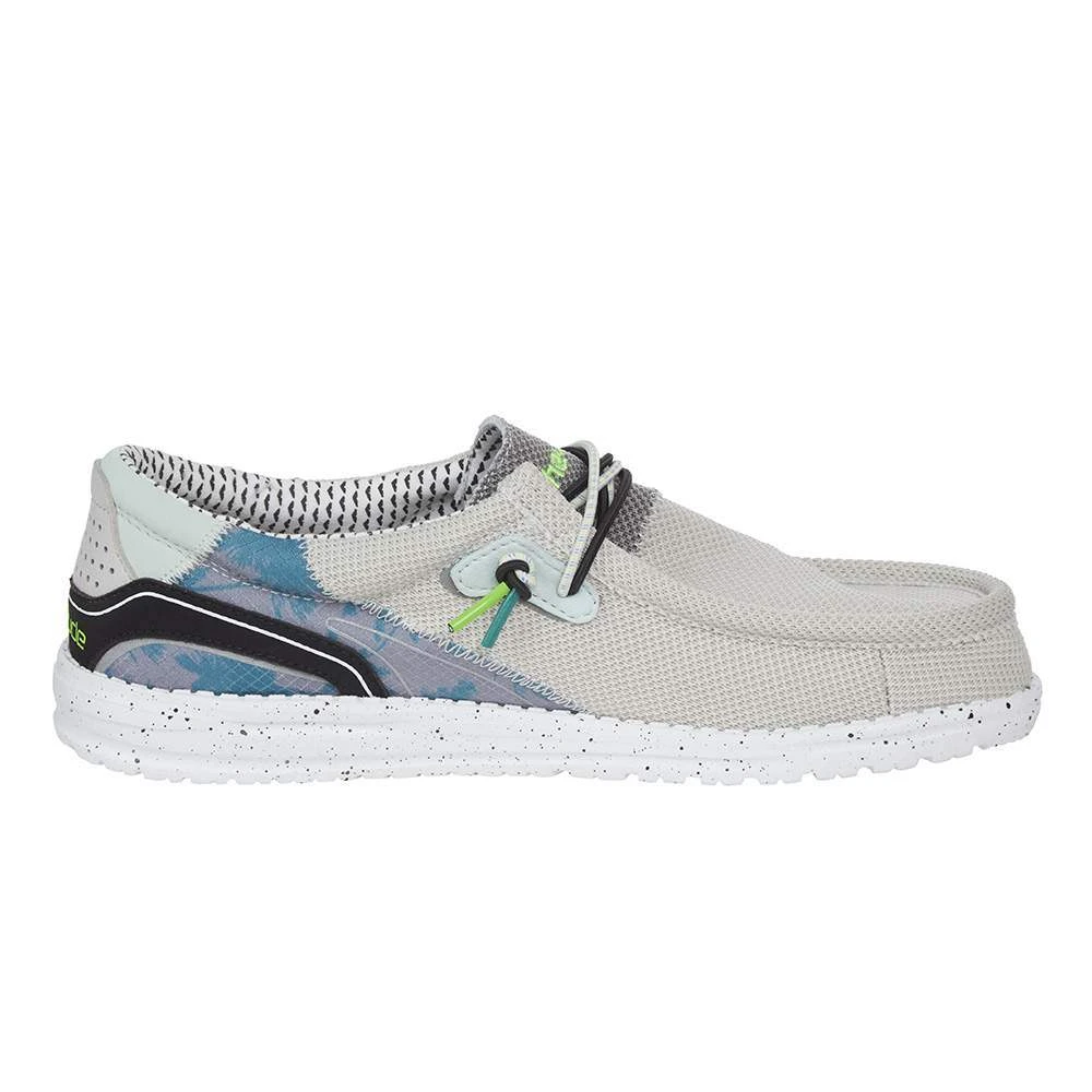 The Hey Dude Men’s Wally Hawk White Palms Casual Shoes are a retro style loafer with a colorful tonal design. They are a fun spin on the classic Hey Dude Wally shoes. They offer the same comfy cushioned insole, flex & fold outsole and killer style you love in a Wally.Â