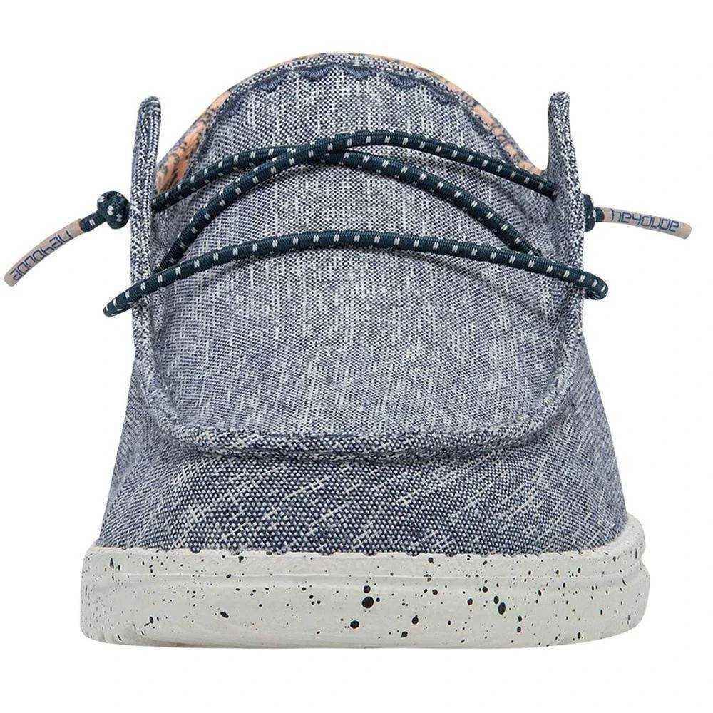 Our most popular moc meets soft chambray-cotton throughout. The Wendy Chambray collection embodies the Hey Dude lifestyle by combining our passion for comfort and quality. Created with a soft, chambray blend upper, finished off with an easy-on elastic lacing system and an ultralight outsole for extra comfort. This design is perfect for all day wear.