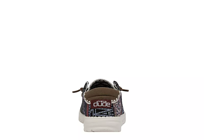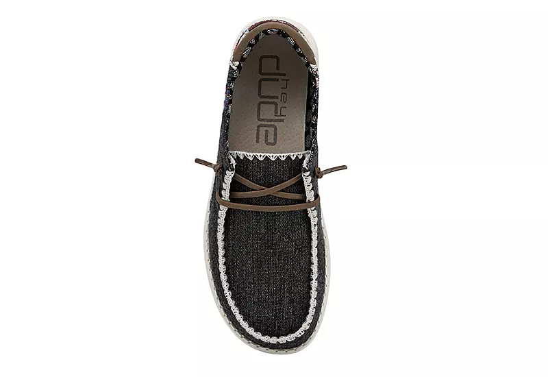 Relax into your passion with the HEYDUDE Wendy Rodeo women’s slip-on sneaker. With a textile upper featuring a contrasting heel detail that bleeds into the sides, this slip-on sneaker is machine washable for easy maintenance. The removable Memory Foam insole and leather lining offer ergonomic comfort and cushioning, while the ultralight outsole lets you explore unfettered.